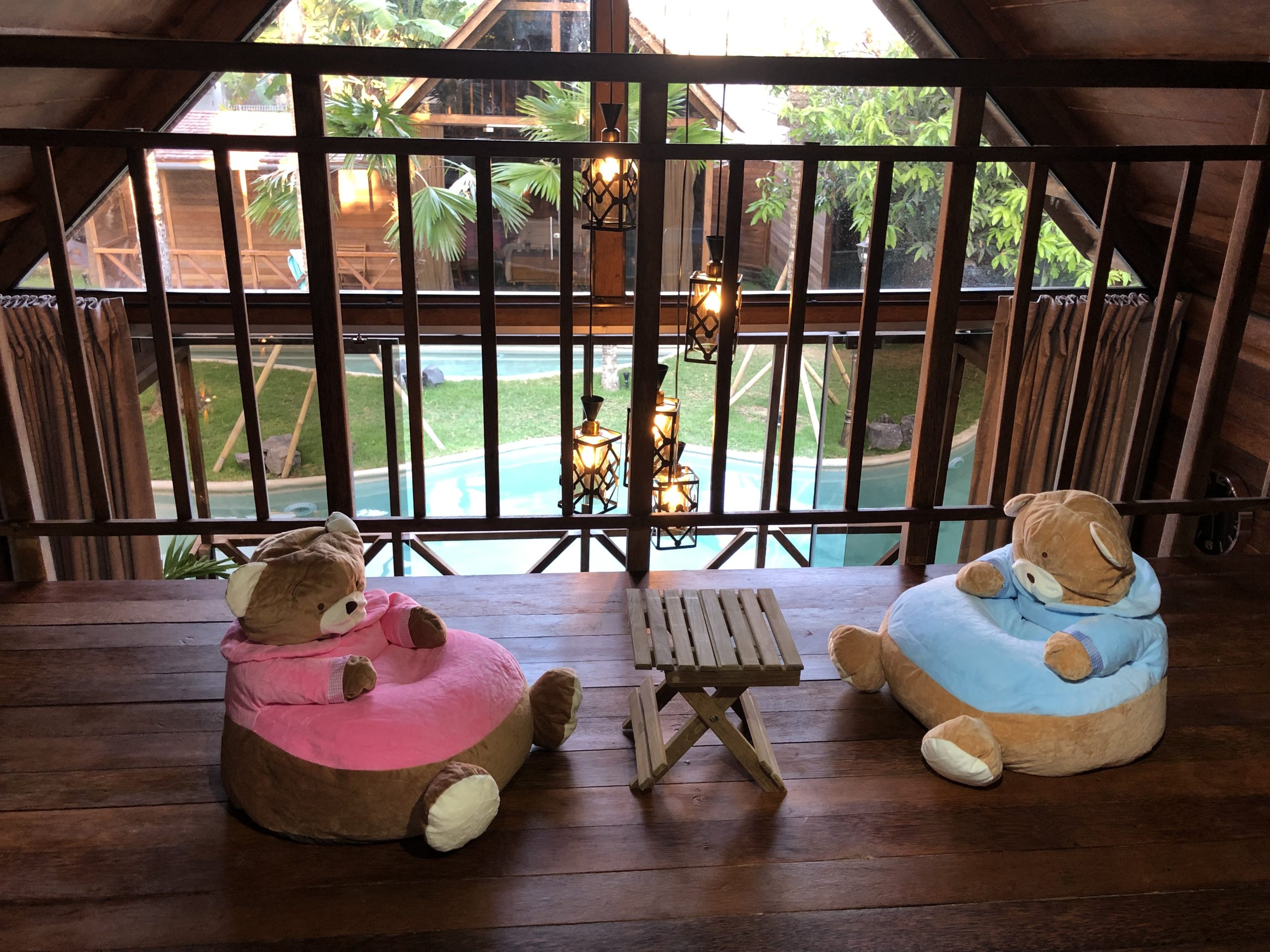 Experience the charm of a private Bali Lagoon Bungalow, where comfort meets tranquility. This detached bungalow features a cozy 4m x 4m room with a luxurious 2m x 1.6m bed, ideal for 2 adults or a family (2 adults and 1-2 kids). Enjoy a dedicated workspace with a desk, and relax in the lounge area with a comfortable armchair. For entertainment, a projector with a foldable screen is at your disposal. For longer stays, kitchen facilities are available for your use.